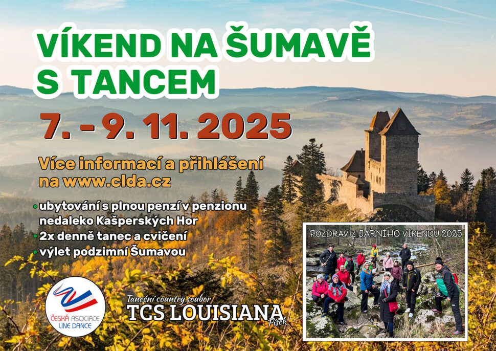 Tradiční „podzimní“ víkend na Šumavě nedaleko Kašperských Hor. Těšit se můžete na lekce Line dance a výletování po Šumavě.Více informací a přihlášení ZDE
